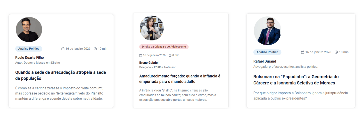 🧸 Amadurecimento forçado: quando a infância é empurrada para o mundo adulto, por Bruno Gabriel: A infância virou “atalho”: na internet, crianças são empurradas ao mundo adulto; nem tudo é crime, mas a exposição precoce abre portas a riscos maiores. Leia na íntegra.
