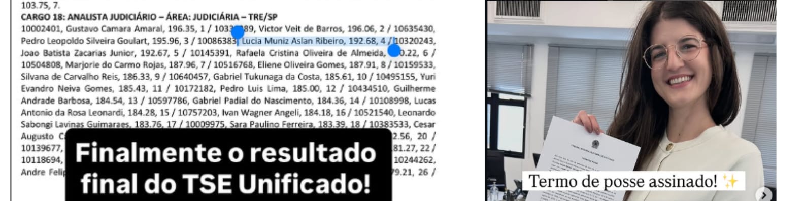 Em 2024, Lúcia tomou uma decisão estratégica: fez apenas duas provas, ambas de tribunais federais e foi aprovada nas duas, alcançando o 4º lugar em uma delas.
