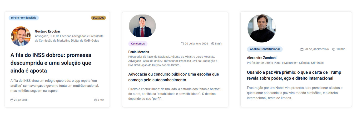 🤔 Advocacia ou concurso público? Uma escolha que começa pelo autoconhecimento, por Paulo Mendes: Direito é encruzilhada: de um lado, a estrada dos “altos e baixos”; do outro, a trilha da “estabilidade e previsibilidade”. O destino depende do seu “perfil”. Leia na íntegra.